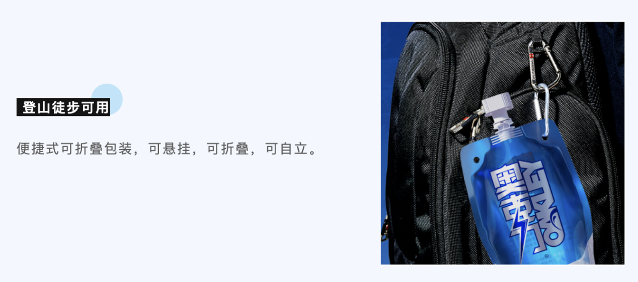 (4)優(yōu)良的柔韌性,可以根據(jù)空間調(diào)整形態(tài),體積隨內(nèi)容物減少而變小,方便用戶在不同場景下使用。